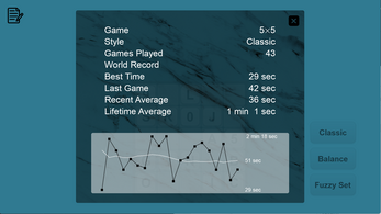 The full game includes 3 different play styles and 5 board sizes each, plus 40+ achievements to unlock and global ranking for all 15 style and board combinations!